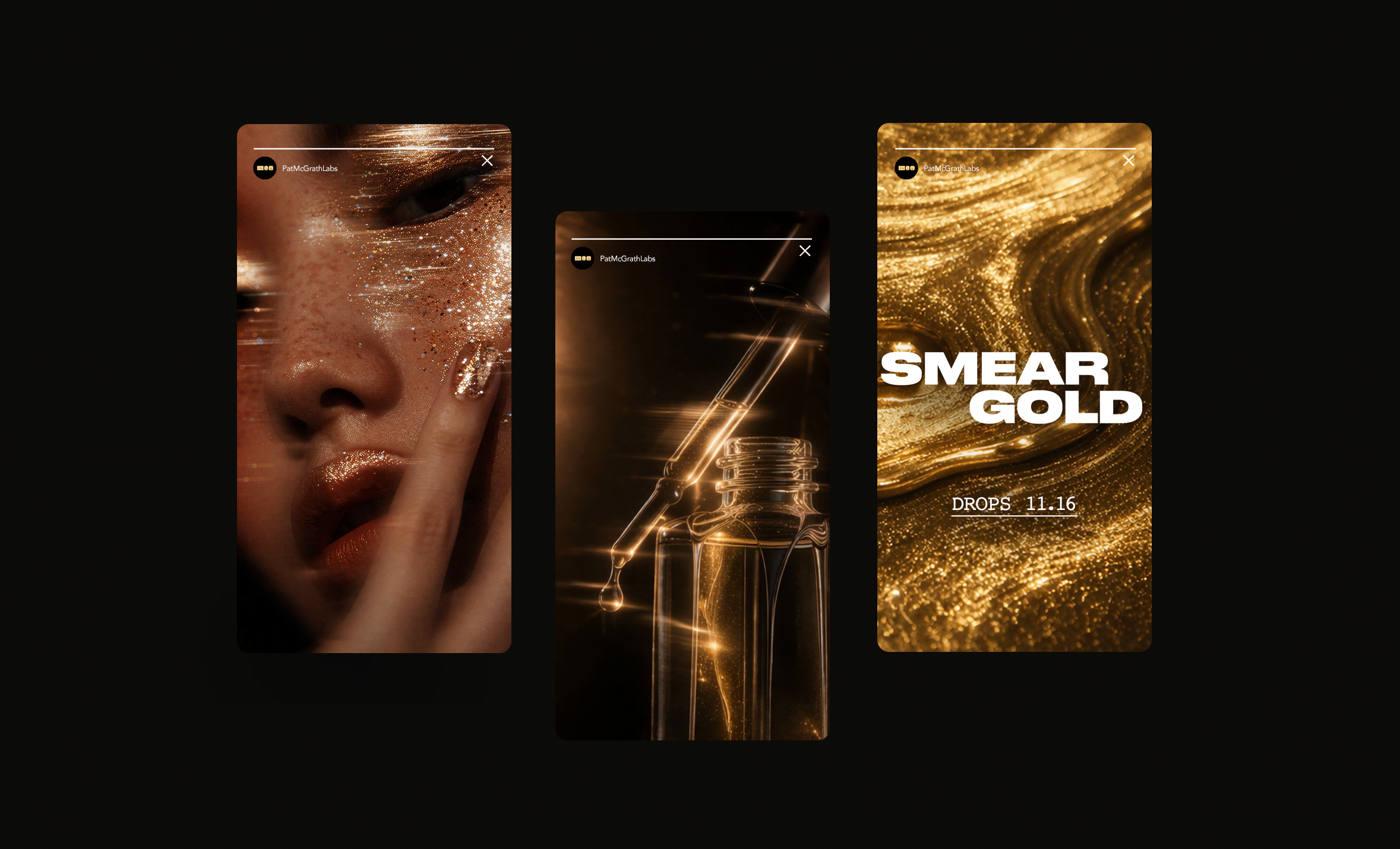 Our task was to translate Pat’s singular style into a campaign that built mystery, drove anticipation, and positioned Gold_001 not just as a pigment, but as a cult object.