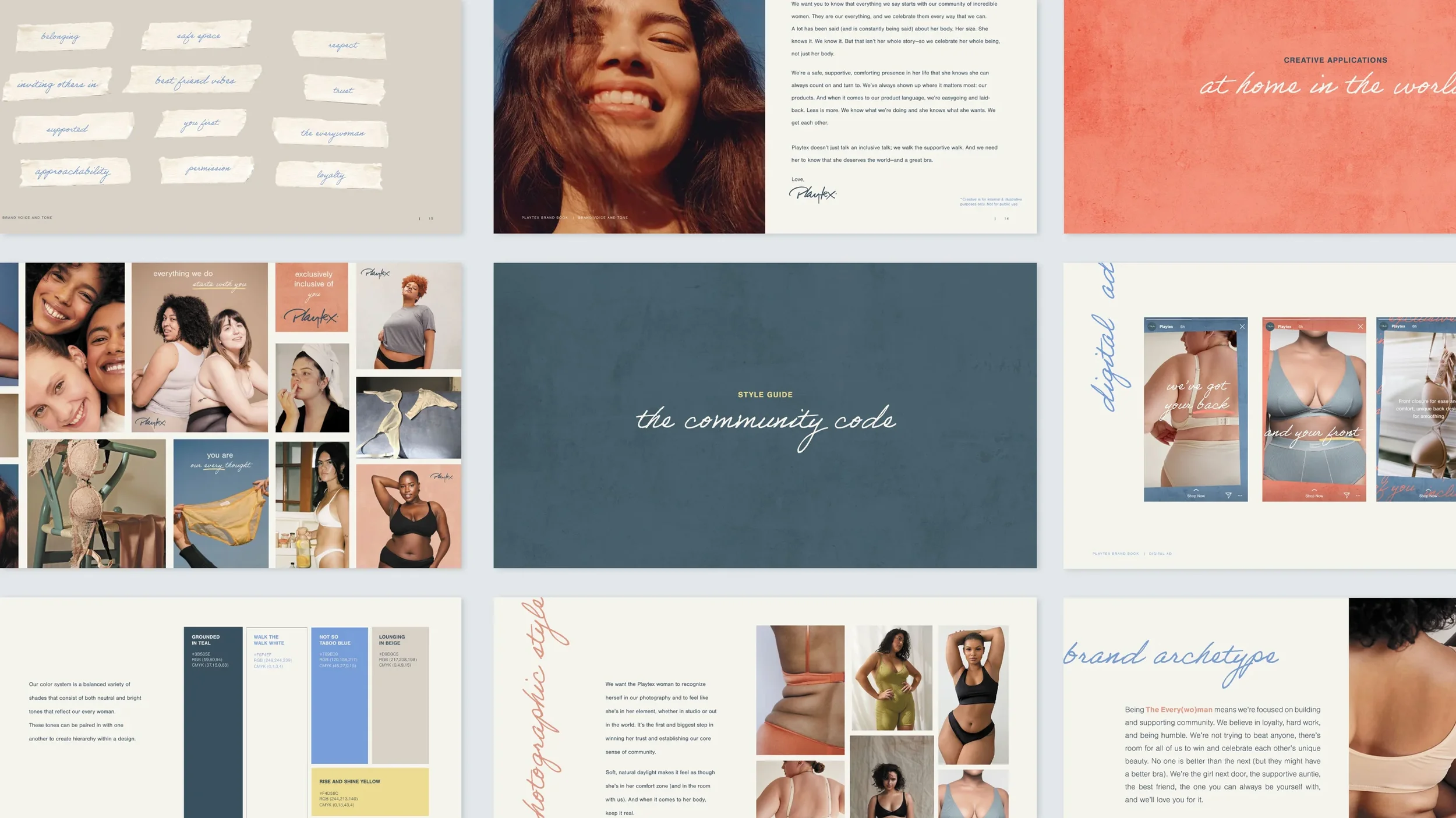 Grounded in the brand’s core values of support and inclusivity, we developed a fresh visual and messaging system that felt both timeless and of the moment. We paired warm, natural photography with handwritten type, natural textures and welcoming language. The result was a brand glow-up that reestablished Playtex as the brand that makes products to fit your body, not the other way around.